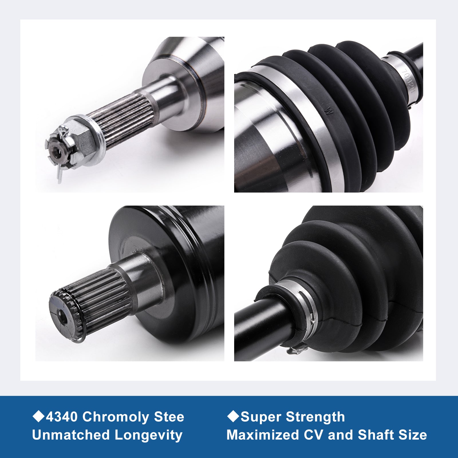 - 【Superior Design】All front wheel bearing cv axle are made with heavy-duty 4340 chromoly steel for superior strength and longevity. Compressed Length: 558 mm; Input Shaft Spline Count: 22; Output Shaft Spline Count: 26