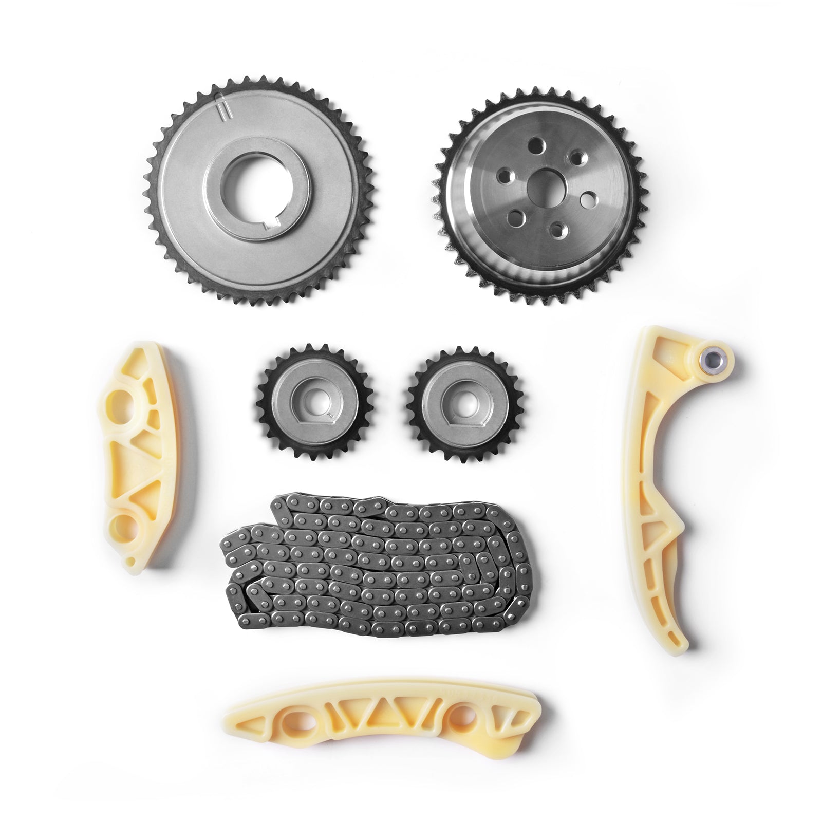 • 【9-4201S Timing Chain Kit with Water Pump Package】timing chain (148 links), tensioner, vvt camshaft gears (2 exhaust), 2 camshaft position actuators, 2 variable valve timing solenoids, crank sprocket (23 & 42 teeth), guide rail (tensioner guide, left and upper for cam chain), timing chain balance shaft (134 links), balance shaft tensioner, balance shaft sprocket (intake & exhaust side), guide rail balance shaft (upper & left & right), water pump with gasket, timing cover gasket set, 2 bolts