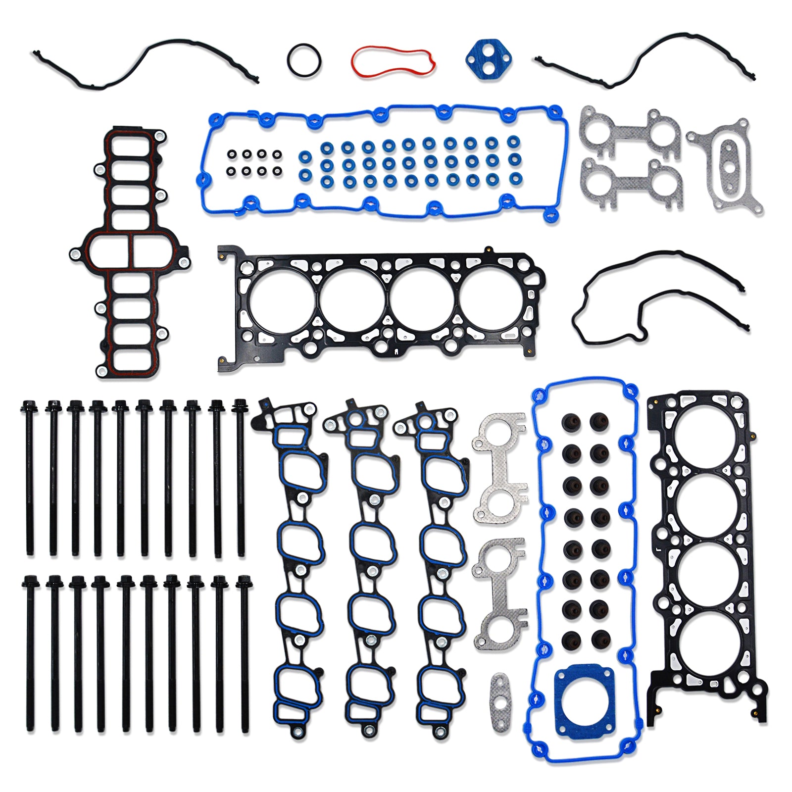Комплект прокладок головки блока цилиндров GOCPB с болтами головки блока цилиндров HS9790PT-15 ES72798 Совместим с Ford Expedition F250 F350 Super Duty 00-04 E350 Super Duty F150 00-03 E150 E250 Econoline 00-02 5.4L V8