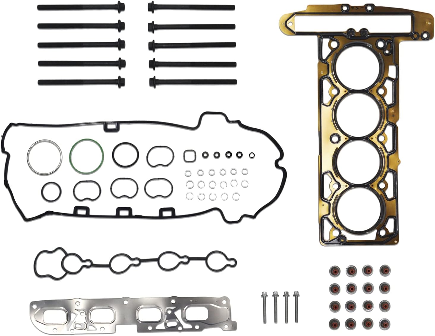 - 🚘【Список комплектации】В комплект поставки входят многослойная стальная (mls) прокладка головки блока цилиндров, прокладка клапанной крышки, маслосъемные колпачки, прокладка впускного коллектора, прокладка выпускного коллектора, переднее уплотнение распределительного вала, уплотнительные кольца, другие небольшие прокладки, 14 болтов головки блока цилиндров ( 10 длинных болтов, 4 коротких болта)