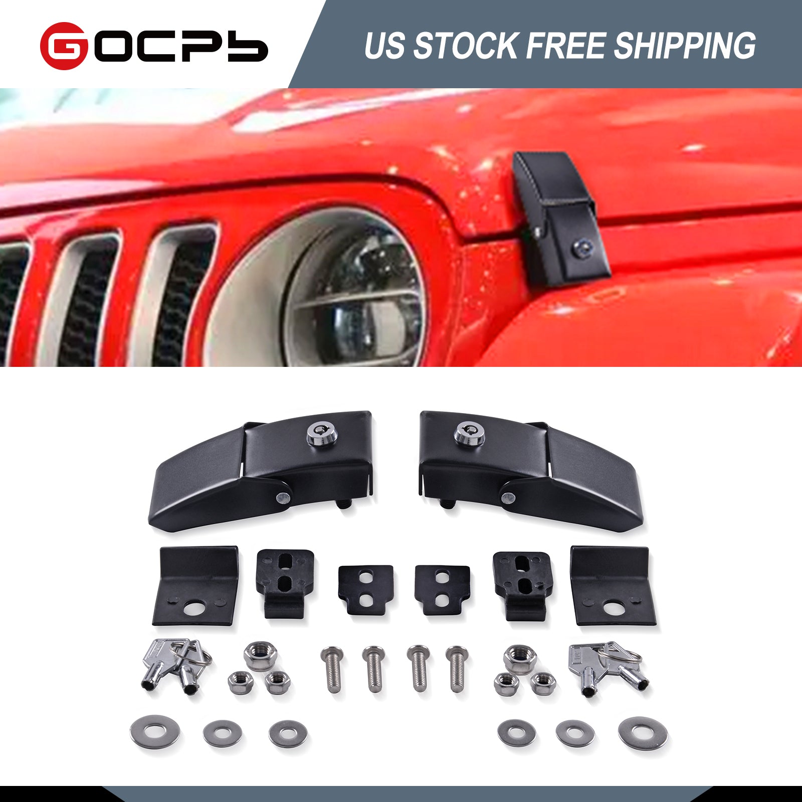 Стальные защелки капота GOCPB, совместимые с Jeep Wrangler 2007-2023 JK JKU JL JLU Gladiator JT Rubicon Sahara X Off Road Sport Внешние аксессуары