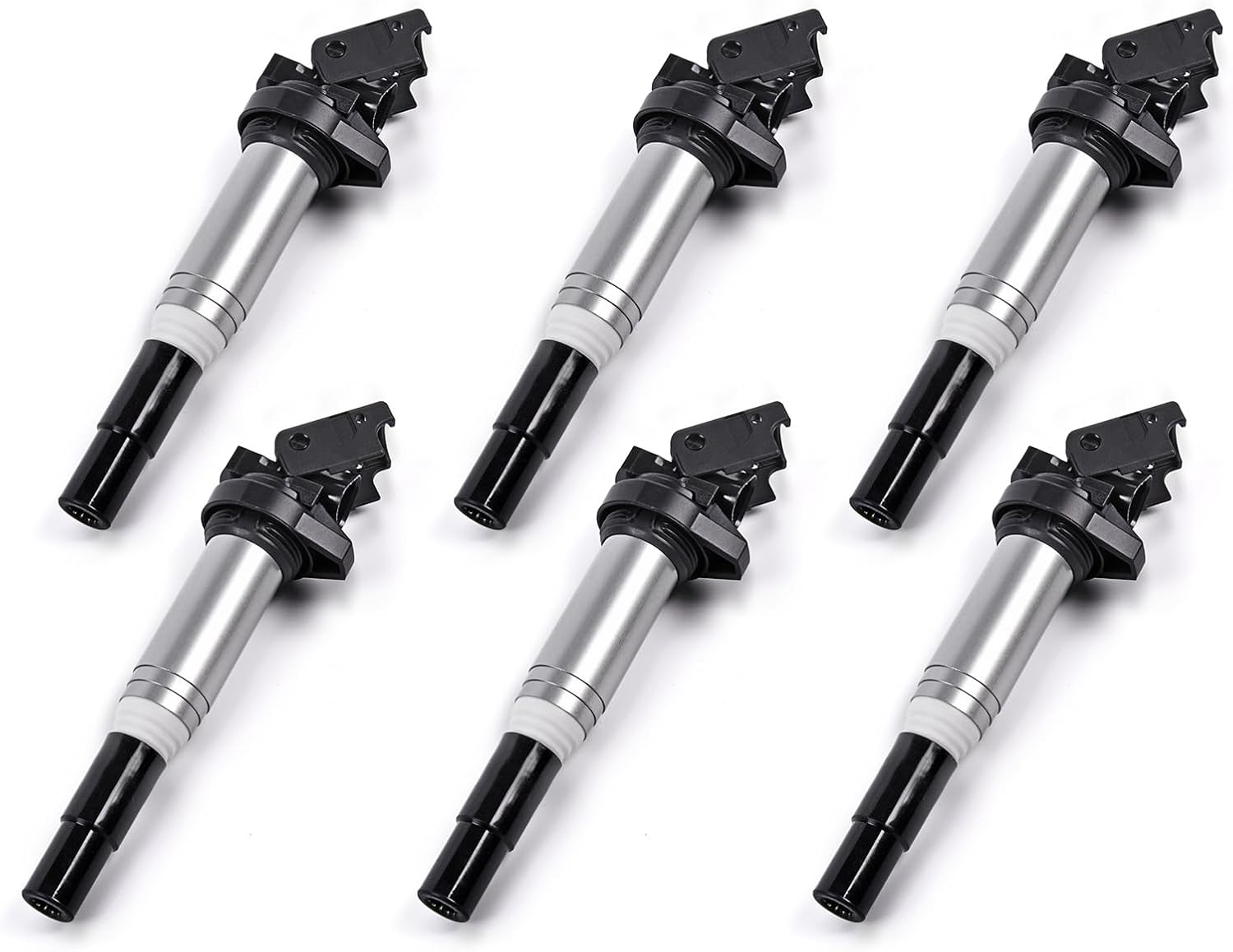 Ignition Coil Pack Set of 6 Replacement for Bosch 0221504470 12138616153 12137594937 12138657273 12137562744 Compatible with BMW 325i 335i 328i 525i 530i 330i 650i X3 X5 M3