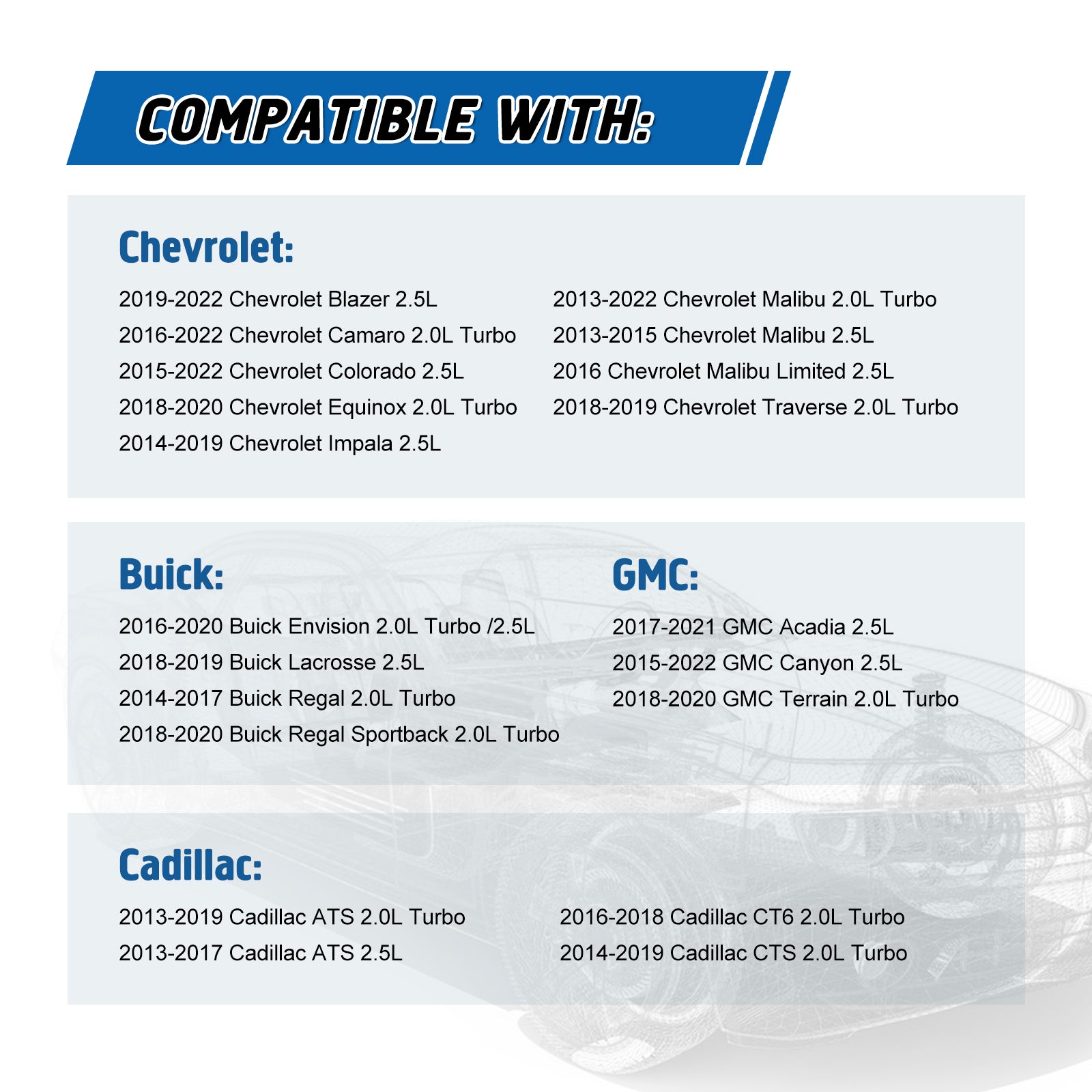 - Application: Ignition Coils compatible with Malibu 2013-2021,Envision 2016-2020,Colorado 2015-2021,Equinox 2018-2020,Impala 2014-2019,ATS 2013-2019,Regal 2014-2017,Malibu Limited 2016-2016,Malibu 2013-2021,Acadia 2017-2020,Camaro 2016-2021,Terrain 2018-2018,Blazer 2019-2021,ATS 2013-2019,CTS 2014-2015,Canyon 2015-2019,CTS 2017-2019,Regal TourX 2018-2019,Regal Sportback 2018-2018,Traverse 2018-2019,LaCrosse 2018-2018,CT6 2016-2018,Impala 2014-2019