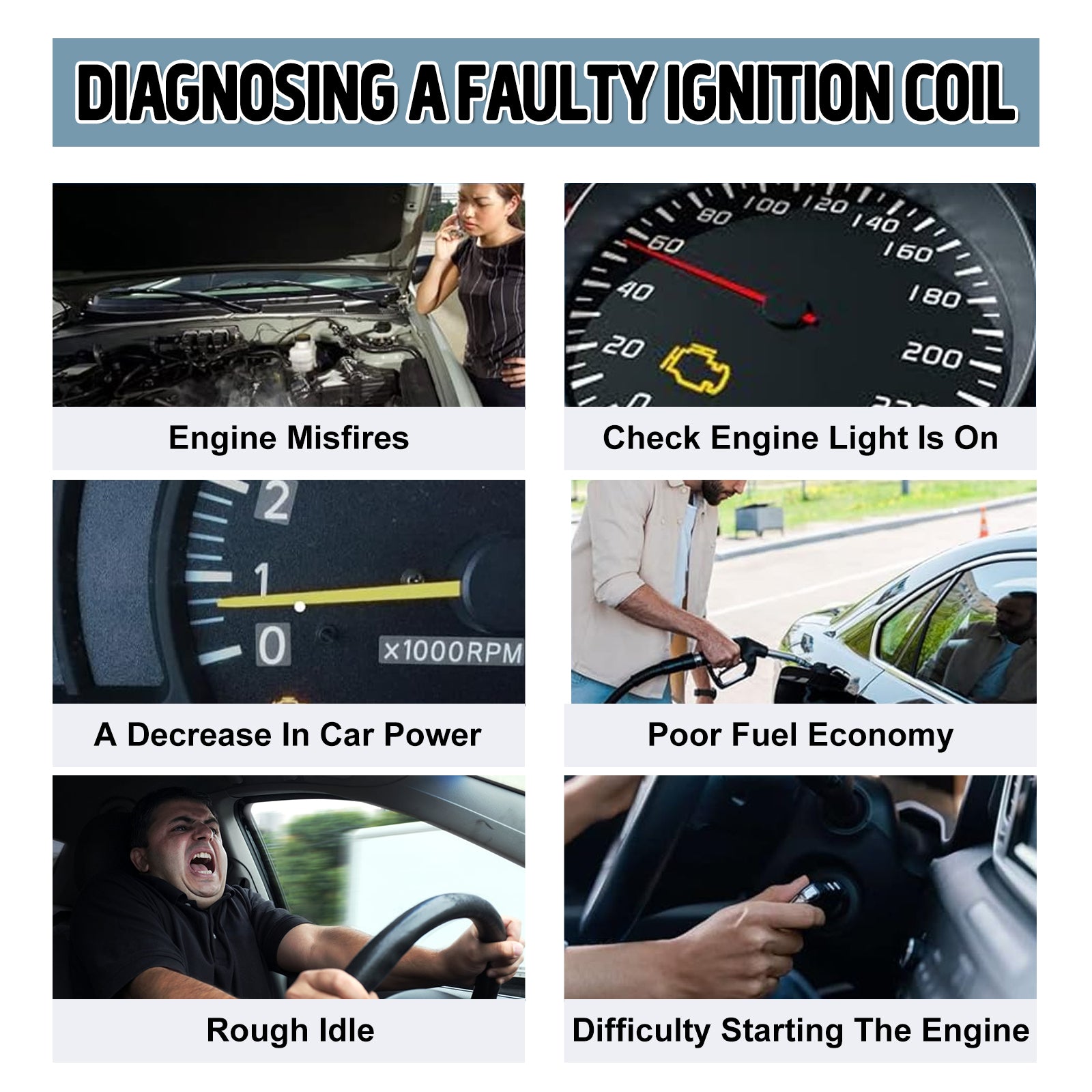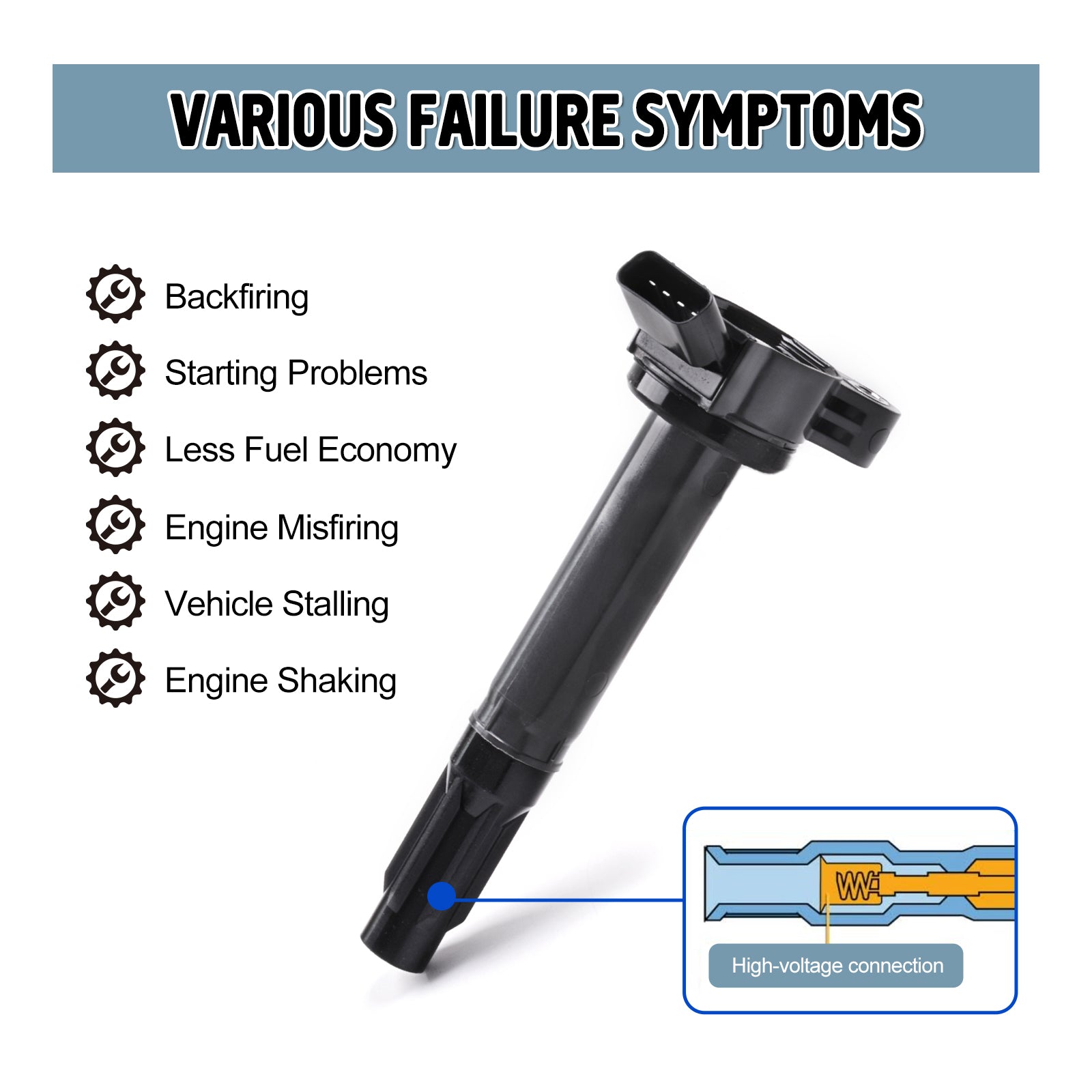 - 🚘【Function】: If you have a problem with your car such as no/hard start, long crank time, misfires, lack of power, inconsistent transmission shifts, spark plug fouling, premature catalytic converter failure, poor fuel economy, Please replace your ignition coil. Engineered to stringent OE specifications, it is sure to exact installation and function the same or even better than the Original part.