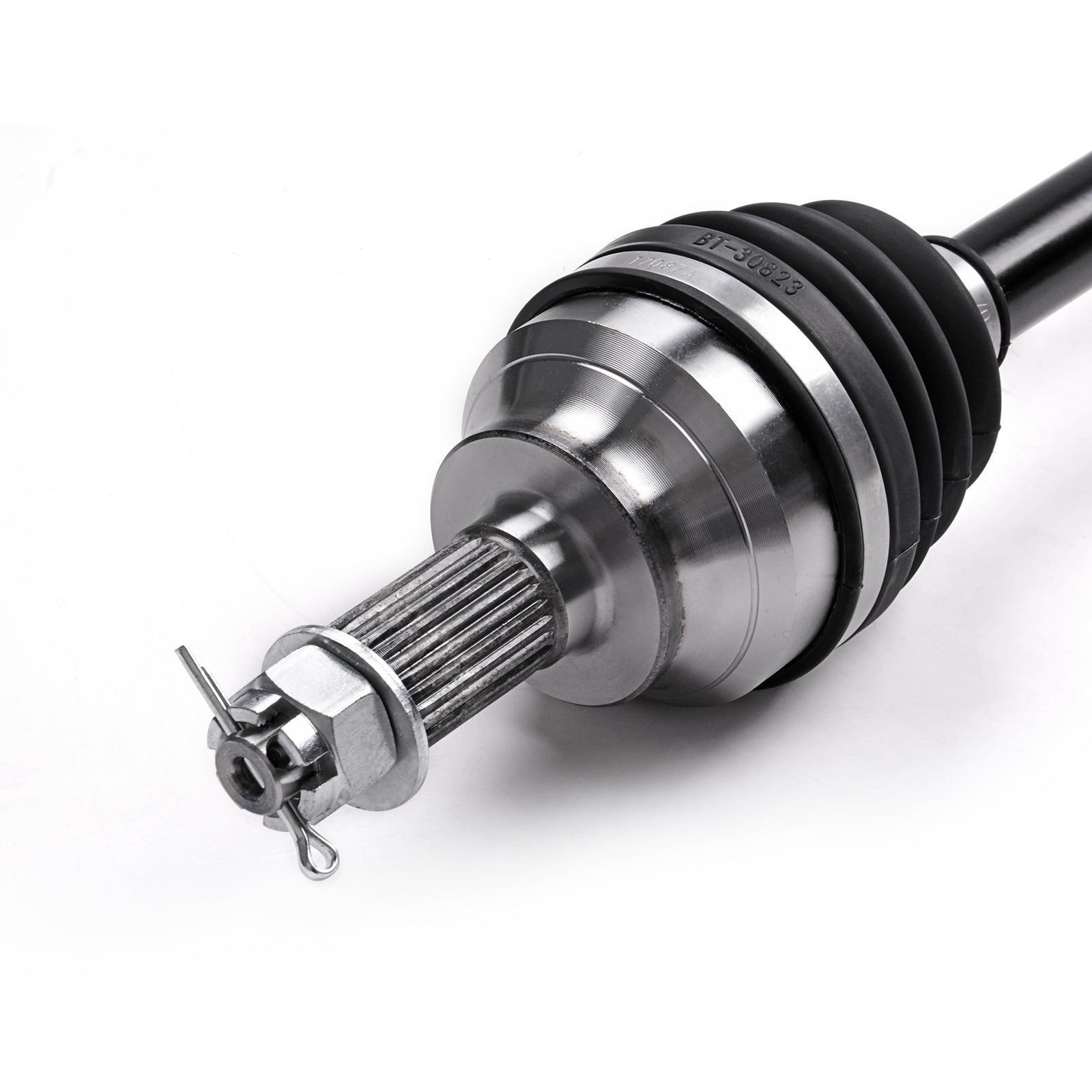 - 【Superior Design】All front wheel bearing cv axle are made with heavy duty 4340 chromoly steel from tip to tip for superior strength and longevity. CV joints feature high articulation angles and come packed with synthetic grease so they stay cool
