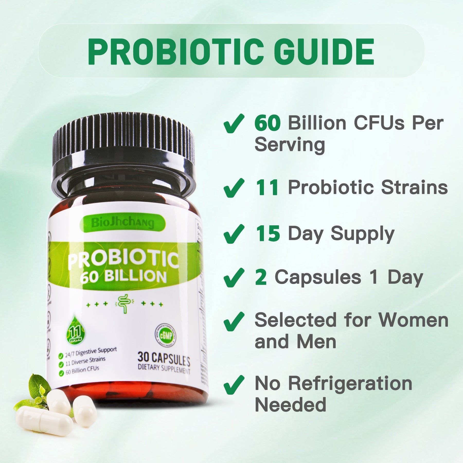 Probiotics 60 Billion CFU,11 Diverse Strains Probiotic Prebiotics for Women & Men, Immune, Digestive & Gut Health Sleep Support Occasional Constipation Diarrhea Gas & Bloating 30 Count