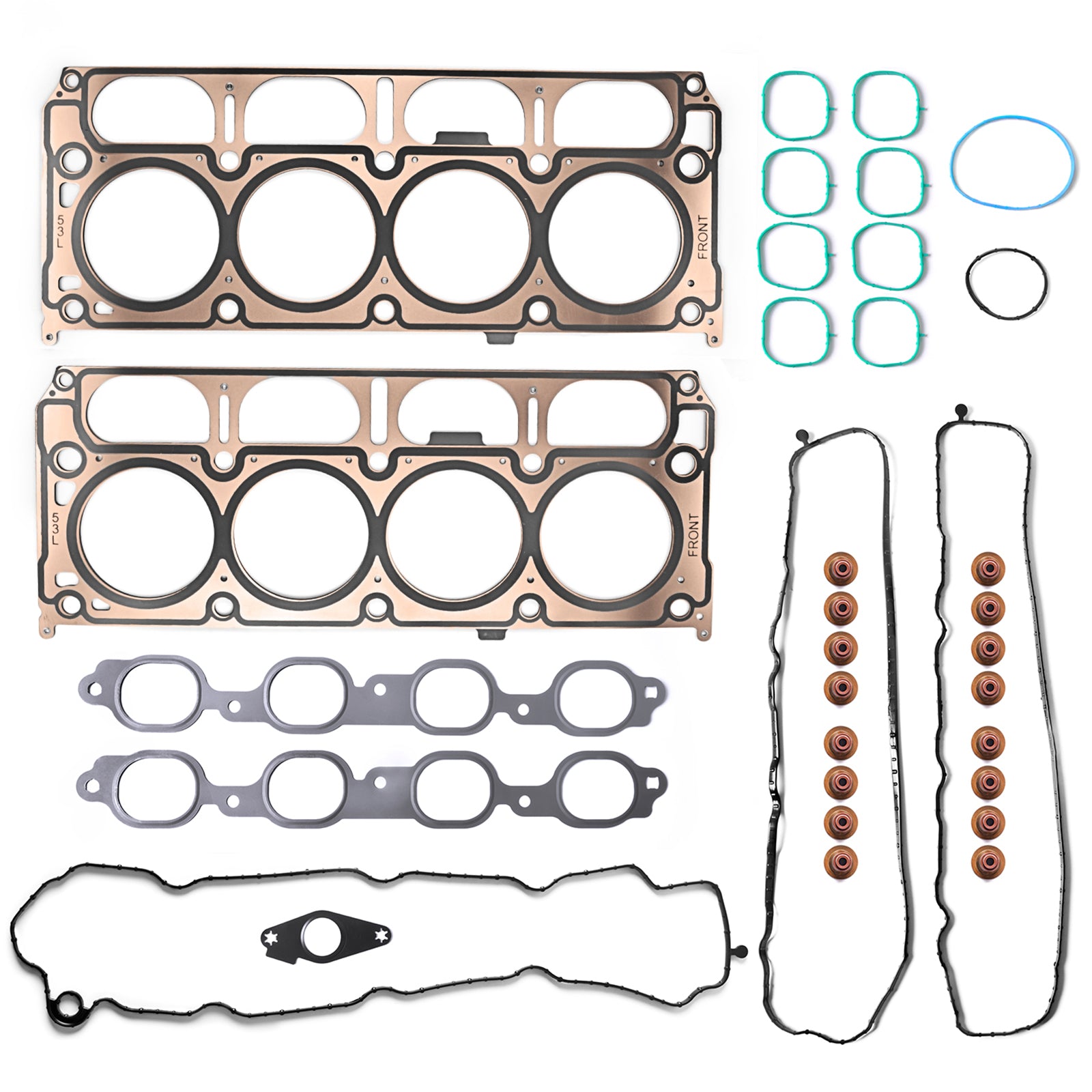 - Head Gasket Kit Includes: Head Gasket prevents liquids and gases from escaping into adjacent cylinders and the surrounding oil and coolant galleries. Head Gasket Kit includes Multi-layered steel (MLS) head gasket, Intake manifold gasket, Valve cover gasket, Exhaust manifold gasket, Viton valve stem seals, Camshaft front O-rings and Silicone sealant